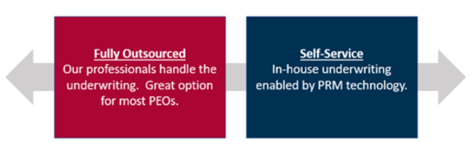 With PEO Velocity, we offer a spectrum of service delivery options for entry underwriting to meet your specific needs. This includes service delivery options from self-service entry underwriting to fully outsourced underwriting.